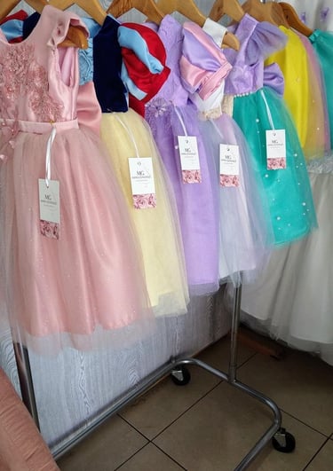 Diseñamos vestidos para niñas de 1 a 12 años, creados artesanalmente para presentaciones, cumpleaños, graduaciones y celebraciones especiales.